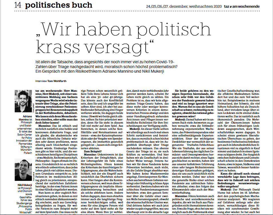 Das etwas andere Weihnachtsinterview in der Taz, gefolgt von Debatten auf Facebook und Twitter (auch der Bundestag hat mitgelesen).
